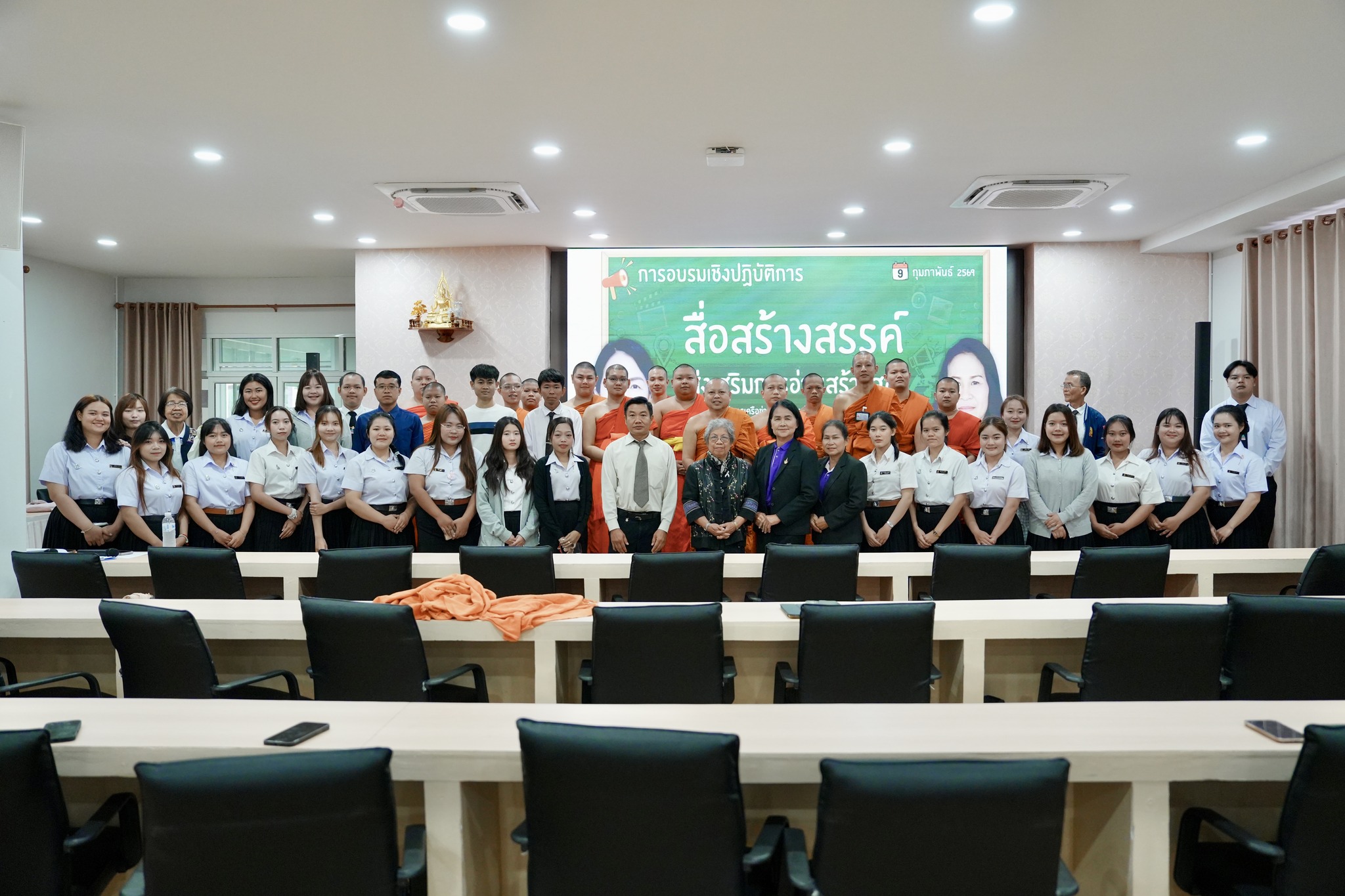 วันจันทร์ที่ 9 กุมภาพันธ์ 2569 เวลา 09.00 น. คณะครุศาสตร์ สาขาวิชาการสอนภาษาไทย มจร วิทยาเขตนครน่าน เฉลิมพระเกียรติฯ ได้จัดกิจกรรมอบรมเสริมหลักสูตรวิชาชีพ : การสร้างสื่อการสอนทำมือ ประจำปีงบประมาณ 2569 ภายใต้โครงการอบรมหลักสูตรระยะสั้น (Short Course Training) การอบรมเชิงปฏิบัติการ “สื่อสร้างสรรค์ ส่งเสริมการอ่านสร้างสุข” ขึ้น ให้กับนิสิตหลักสูตรครุศาสตรบัณฑิต สาขาวิชาการสอนภาษาไทย ชั้นปีที่ 2 – 4 โดยทีมครูเครือข่ายรางวัลสมเด็จเจ้าฟ้ามหาจักรี น่าน ครูคนึงนิตย์ เขียวสมบัติ ครูทัศนีย์ จันทโคตร ครูเชี่ยวชาญ ข้าราชการบำนาญ สพป.น่าน เขต 2 และได้รับเมตตาจากพระเดชพระคุณ พระราชนันทวัชรบัณฑิต, รศ.ดร. รองอธิการบดี มจร วิทยาเขตนครน่าน เฉลิมพระเกียรติฯ เป็นประธานกล่าวเปิดงานพร้อมให้โอวาทแก่นิสิต ณ ห้องเรียน A101 อาคารศูนย์วิชาการทางพระพุทธศาสนา มจร วิทยาเขตนครน่านฯ อำเภอภูเพียง จังหวัดน่าน ในการจัดกิจกรรมอบรมเชิงปฏิบัติการในครั้งนี้ นิสิตจะได้รับความรู้ ได้ทักษะในการฝึกปฏิบัติร่วมกัน ส่งเสริมการเรียนรู้ร่วมกันในการจัดทำสื่อการสอนทำมือ เป็นการแก้ปัญหาการเรียนรู้ทางภาษาไทยของนักเรียน ในรูปแบบต่าง ๆ จากการออกปฏิบัติวิชาชีพในสถานศึกษาของนิสิต จากประสบการณ์ตรงของนิสิต จากการสัมมนาปัญหาในการเรียนการสอนในชั้นเรียนเห็นว่าสื่อการสอนมีความจำเป็นยิ่งควบคู่กับการเรียนการสอน จึงได้จัดกิจกรรมเชิงปฏิบัติการสร้างสื่อการสอนทำมือในครั้งนี้ขึ้น