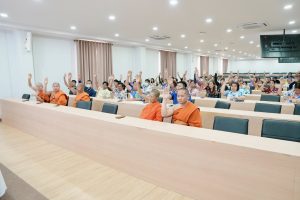วันเสาร์ที่ 21 กุมภาพันธ์ พ.ศ.2569 มจร วิทยาเขตนครน่าน เฉลิมพระเกียรติฯ จัดกิจกรรมจิตอาสาพัฒนาโรงเรียน ภายใต้โครงการมหาจุฬาอาสาเติมปัญญาสู่ชุมชนและสังคม ประจำปี 2569 ณ โรงเรียนบ้านครกคำ ตำบลตาลชุม อำเภอเวียงสา จังหวัดน่าน โดยมีคณะผู้บริหาร คณาจารย์ บุคลากร และนิสิต เข้าร่วมกิจกรรมอย่างพร้อมเพรียง การจัดกิจกรรมในครั้งนี้มีวัตถุประสงค์เพื่อส่งเสริมให้นิสิตได้เรียนรู้จากการปฏิบัติจริง ปลูกฝังคุณธรรม จริยธรรม และจิตสาธารณะ ควบคู่กับการบำเพ็ญประโยชน์เพื่อส่วนรวม อันเป็นการบูรณาการหลักธรรมทางพระพุทธศาสนากับการพัฒนาชุมชนอย่างยั่งยืน โดยกิจกรรมประกอบด้วยมอบอุปกรณ์การศึกษา, มอบทุนการศึกษา และสิ่งของแก่เด็กนักเรียน กิจกรรมร่วมทำบุญทอดผ้าป่า บรรยากาศการดำเนินกิจกรรมเป็นไปด้วยความร่วมมือร่วมใจจากทุกภาคส่วน ทั้งคณะครู นักเรียน และนายอำเภอเวียงสา ซึ่งต่างให้การต้อนรับและสนับสนุนเป็นอย่างดี